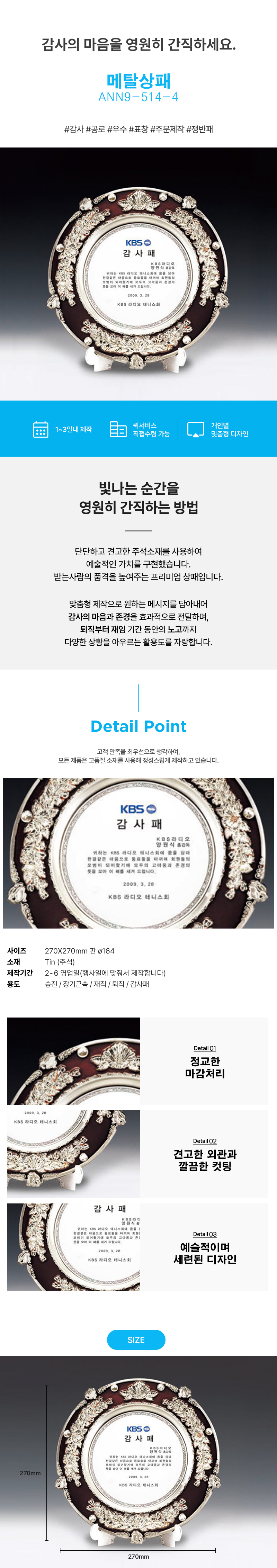 HOME > »óÆÐ/ÈÖÀå > »óÆÐ(±Ý¼Ó/ÁÖ¼®) > °¨»ç °ø·Î ¿ì¼ö ǥâ ÁÖ¹®Á¦ÀÛ Àï¹ÝÆÐ ANN9-514-4